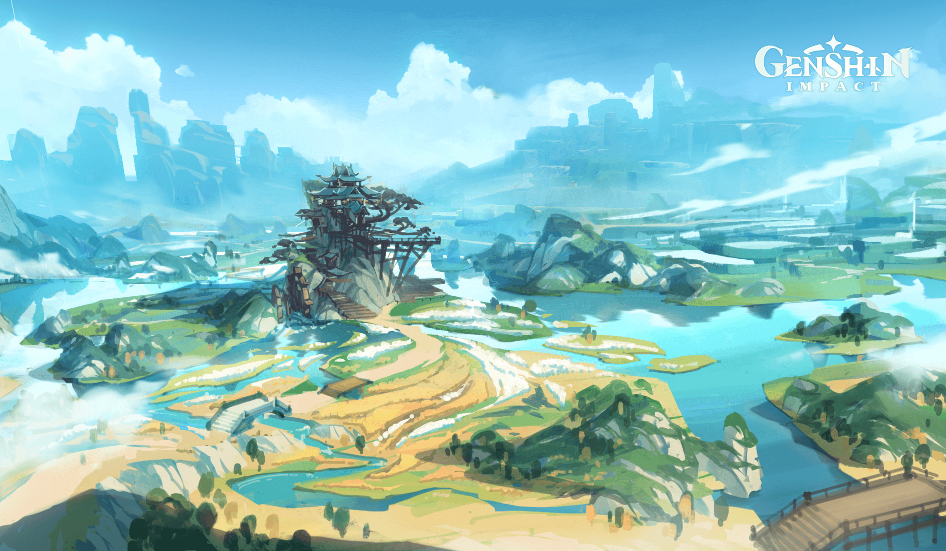 El Puerto de Liyue es el centro comercial más importante de Teyvat, donde comerciantes de todas partes intercambian bienes. La región también alberga lugares emblemáticos como Sal Terrae, una zona